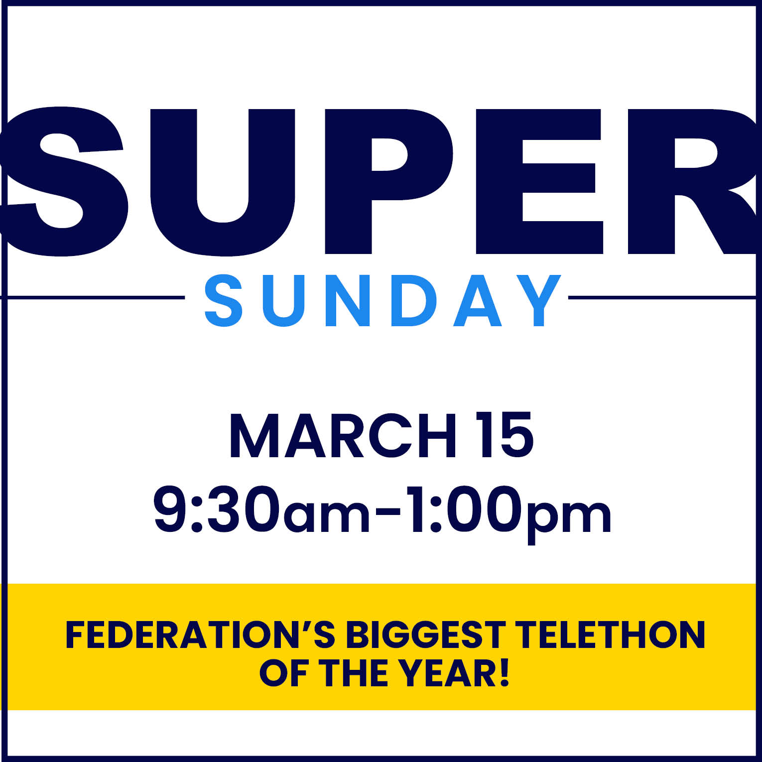 Home Events - Jewish Federation of Northern New Jersey Jewish Federation Super Sunday Super Sunday + Add to Google Calendar + iCal / Outlook export 00 days 00 hours 00 minutes 00 seconds Date Mar 15 2026 Time 9:30 am - 1:00 pm Category Jewish Federation Organizer Kim Schwartzman Phone 2018203936 Email KimberlyS@jfnnj.org Share this event