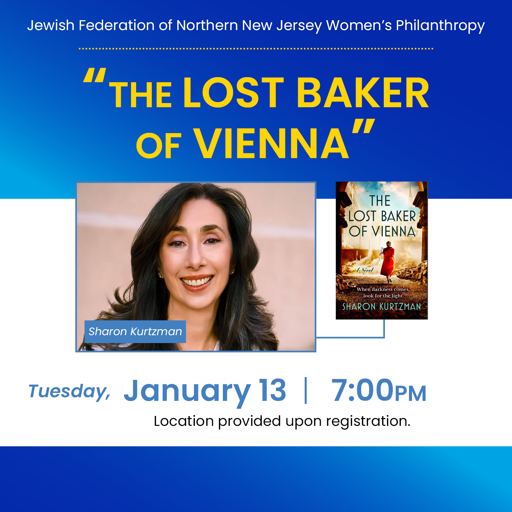 Join Women’s Philanthropy as we hear from Sharon Kurtzman, author of The Lost Baker of Vienna.